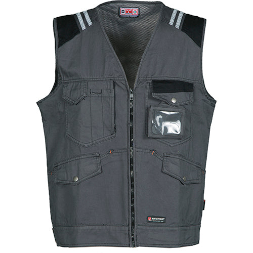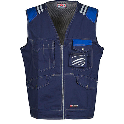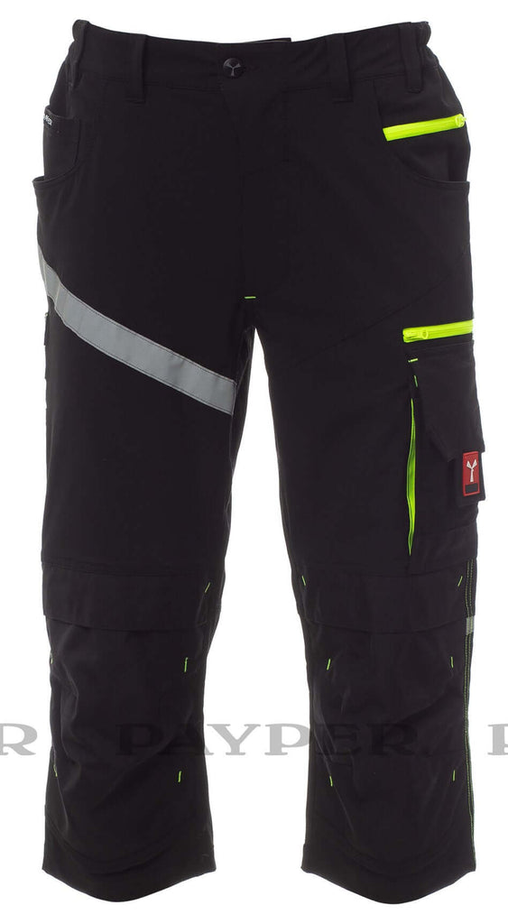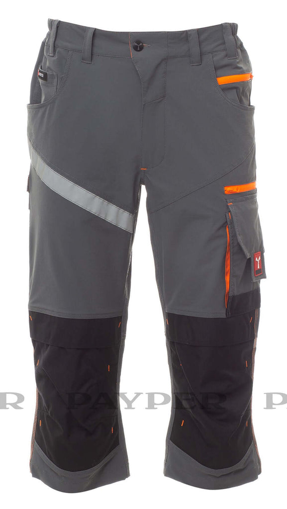 Pantalone unisex, stretch, multistagione, con elastici laterali e passanti in vita, chiusura con zip e bottone personalizzato. Sul davanti ha due tasche sagomate, un taschino porta monete a destra, un taschino di sicurezza chiuso con zip a sinistra. Sul fronte della gamba sinistra presenta una tasca con soffietto, patta chiusa con velcro e portabadge. Sul fronte della gamba destra sono presenti: un taschino porta telefono con bordino retroriflettente e una tasca con soffietto. Entrambe le gambe sono dotate di porta ginocchiere in Nylon Oxford 500D, in tessuto a contrasto (con apertura dal basso) e di inserti retroriflettenti che segnalano l’apertura. Sul retro sono presenti: una tasca con pattina chiusa con velcro, una tasca senza pattina ma con 2 bande retroriflettenti, una tasca porta-metro (gamba destra), inserti retroriflettenti all’altezza del ginocchio (entrambe le gambe), battitacco in tessuto a contrasto (entrambe le gambe). Sono inoltre presenti: - cuciture a tre aghi su cavallo, interno ed esterno gamba - travette di rinforzo a contrasto in vari punti. Le taglie (italiane) centrali 48-50-52 hanno un interno gamba regolare di 82 cm.