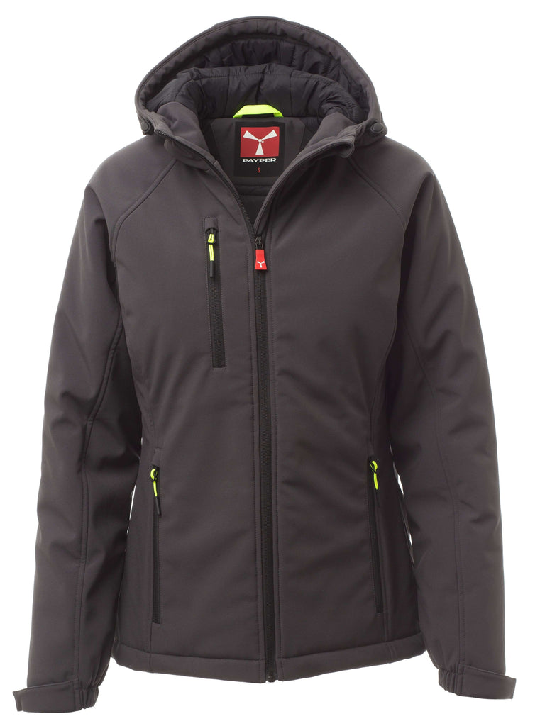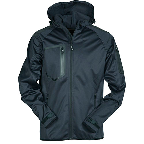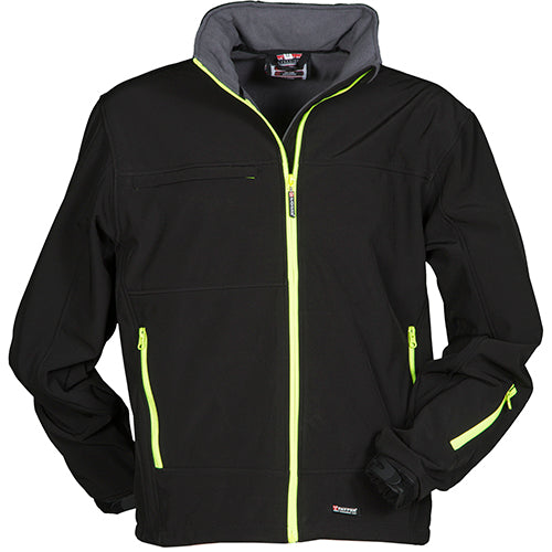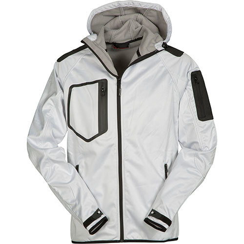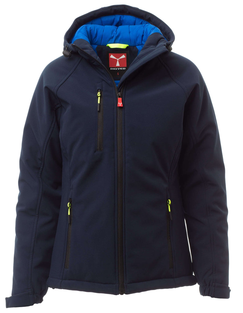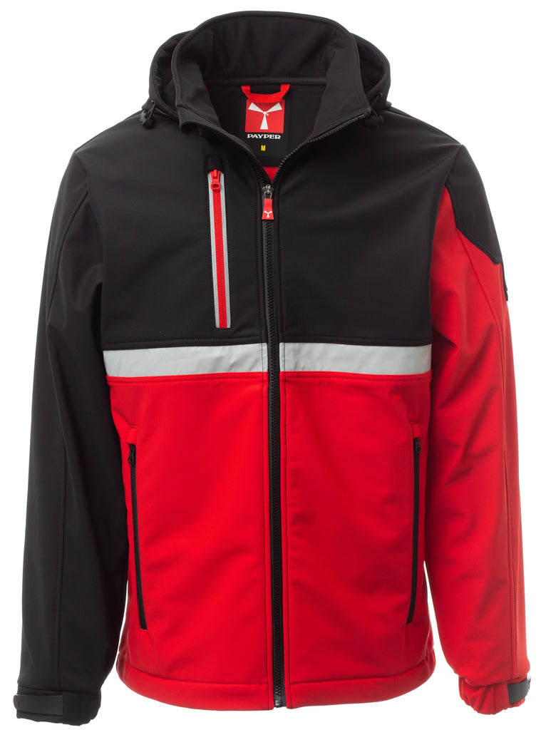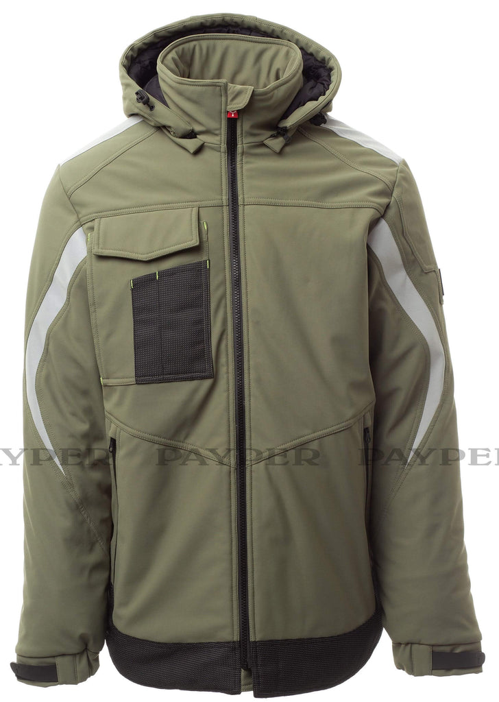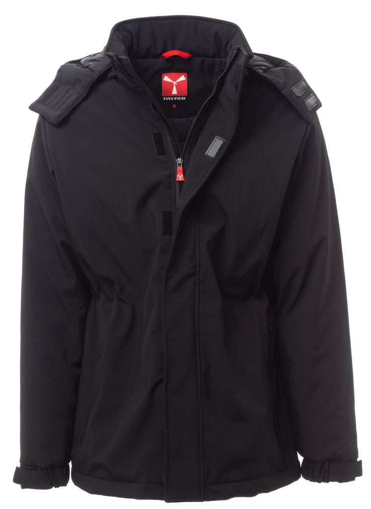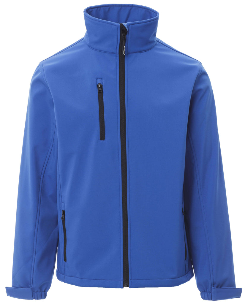 WP 8000 mm H₂O, WVT 5000 g/m² 24h. Giacca ergonomica da uomo bicolore, zip lunga SBS nastrata, cappuccio richiudibile nel colletto, polsini regolabili con stringi polso gommati e velcro, due tasche laterali con zip, una tasca al petto con porta badge a scomparsa, una tasca skipass al braccio, coulisse in vita.