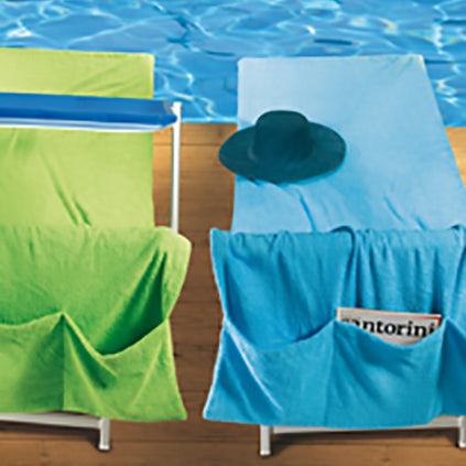 Telo in microfibra da lettino con 3 tasche lato testa e angoliera lato opposto.