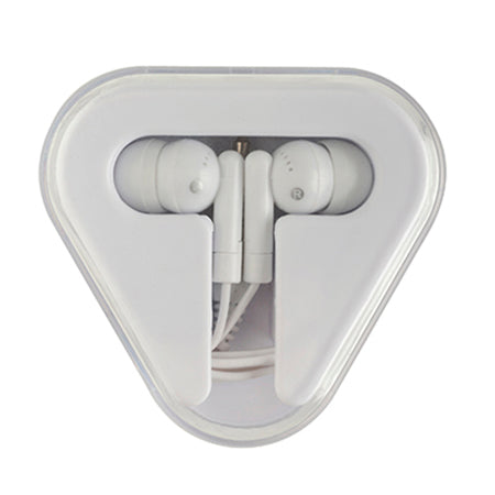 Pratico set di auricolari in una scatola triangolare.