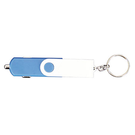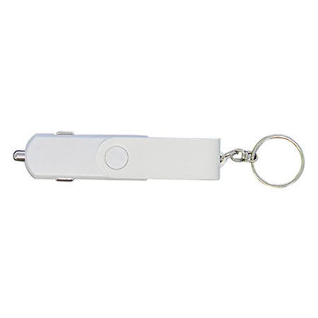Caricatore USB da auto per la ricarica del tuo smartphone. E' compatto e facile da trasportare grazie all'anello portachiavi.