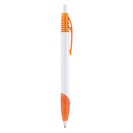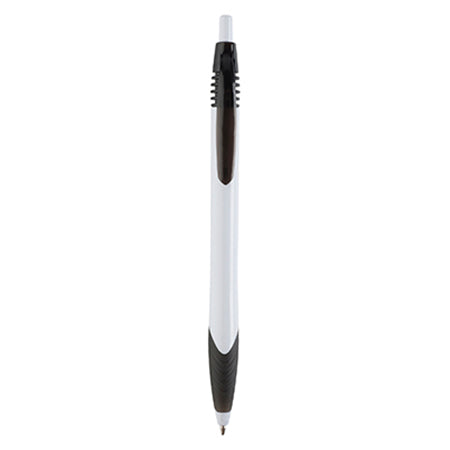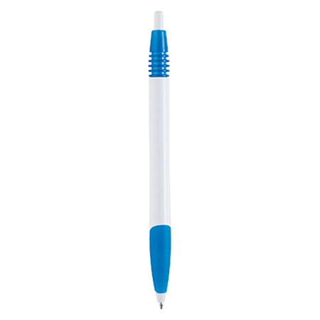 Fusto bianco con grip in gomma colorata e clip a colore traslucido.