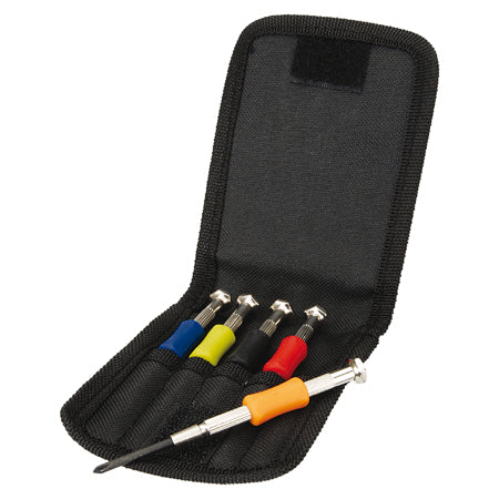 Con cinque mini cacciaviti, questo colorato set è ideale in qualsiasi casa o ufficio. I piccoli utensili sono ideali per aprire i comparti della batteria o lavorare su piccoli dispositivi elettronici.