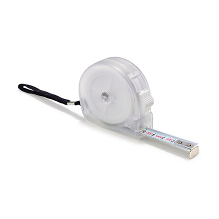 Flessometro con scala in centimetri, pulsante di blocco e clip da cintura.