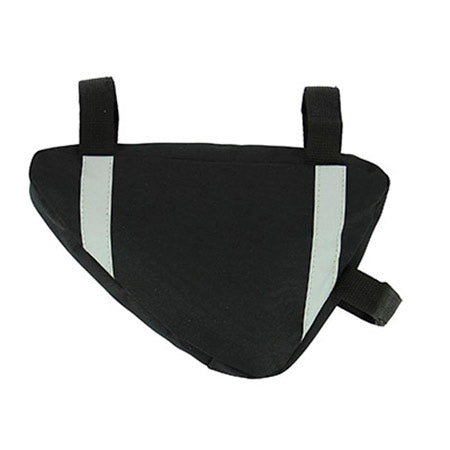Borsa triangolare da bicicletta in poliestere, ideale per riporre comodamente piccoli oggetti. Scomparto principale con chiusura lampo e cinghia a strappo adattabili alla maggior parte delle biciclette.
