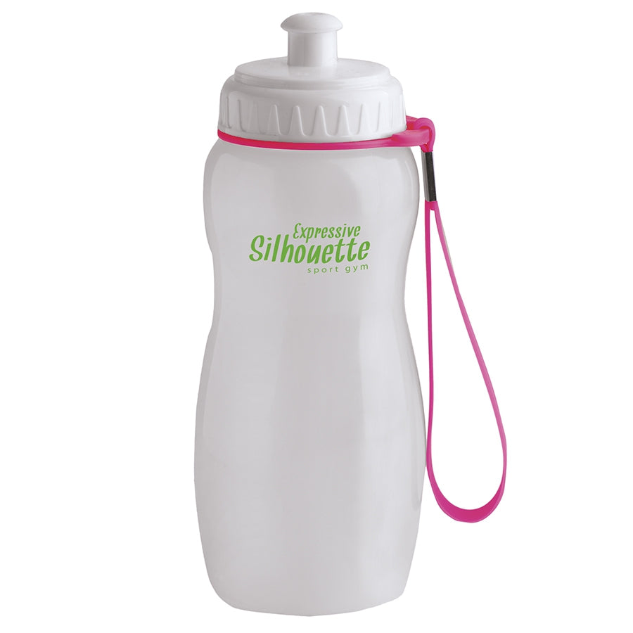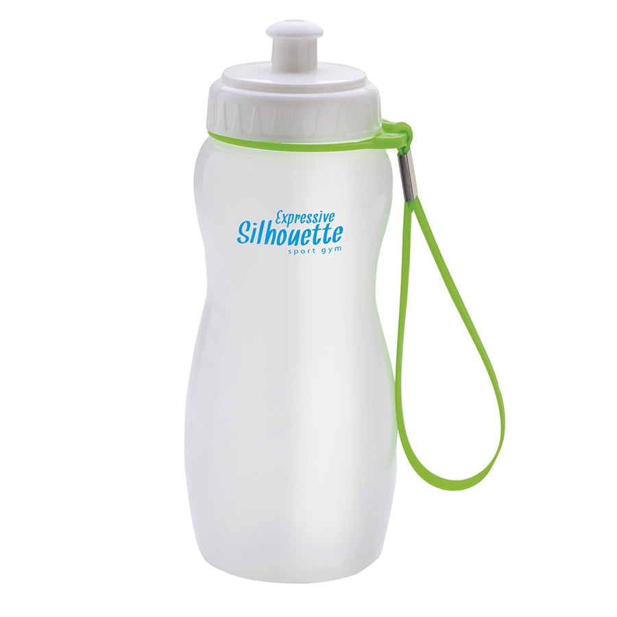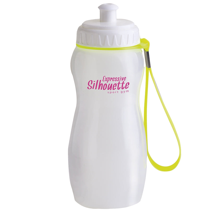 Bottiglia per acqua in morbida plastica con cinghia da polso staccabile in full colours fluo.