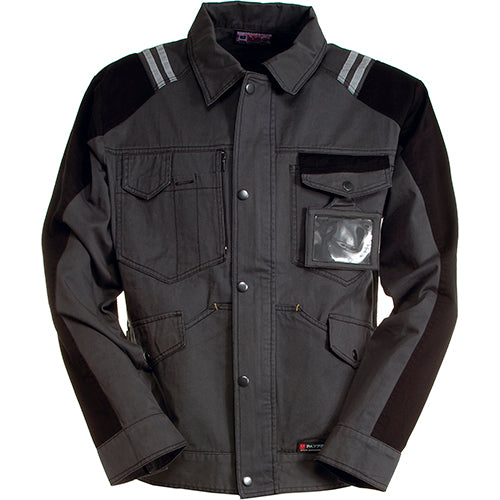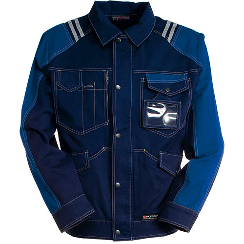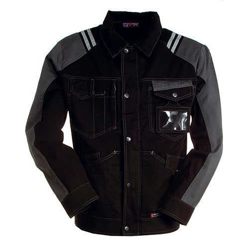 Giubbino unisex invernale, chiusura frontale con zip e patta con bottoni automatici in metallo, regolazione con bottone ai polsi e in vita, tre tasche frontali LOCK SYSTEM di cui due modello canguro con patta e bottone in metallo, porta badge staccabile e richiudibile, una tasca multifunzione al petto, due bande riflettenti alle spalle, taglio slanciato modello jeans.