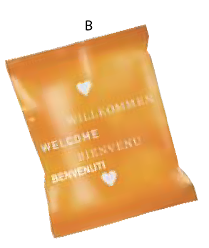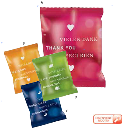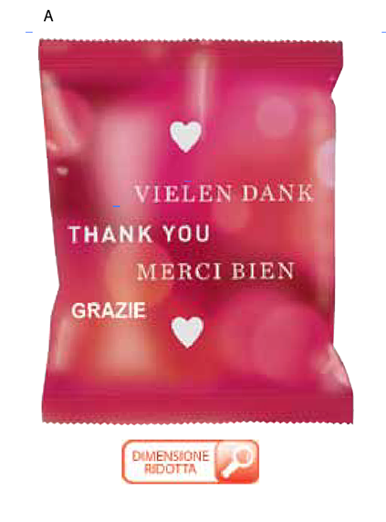 Gommosi con forme standard. Succo di frutta 10%, aromi e coloranti naturali. Confezionati in busta con “motivi standard“.