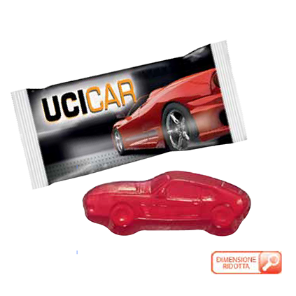 Gommosi personalizzabili. Succo di frutta 10%, aromi e coloranti naturali. Confezionati singolarmente in busta personalizzata trasparente o bianca.