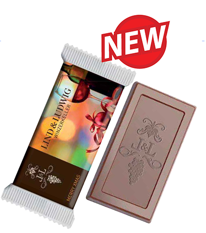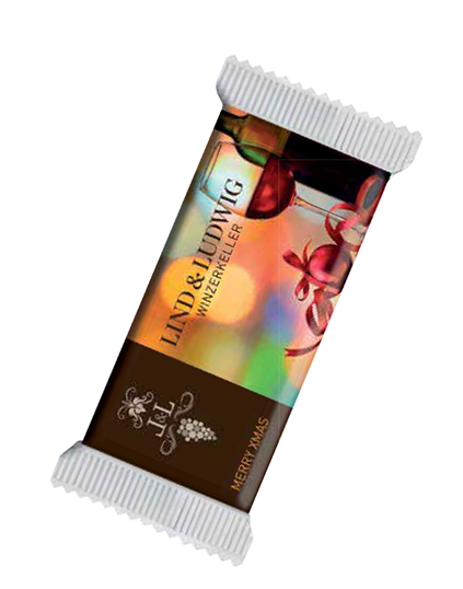il tuo logo e confezionata con incarto personalizzato flowpack bianco, trasparente o alluminio.