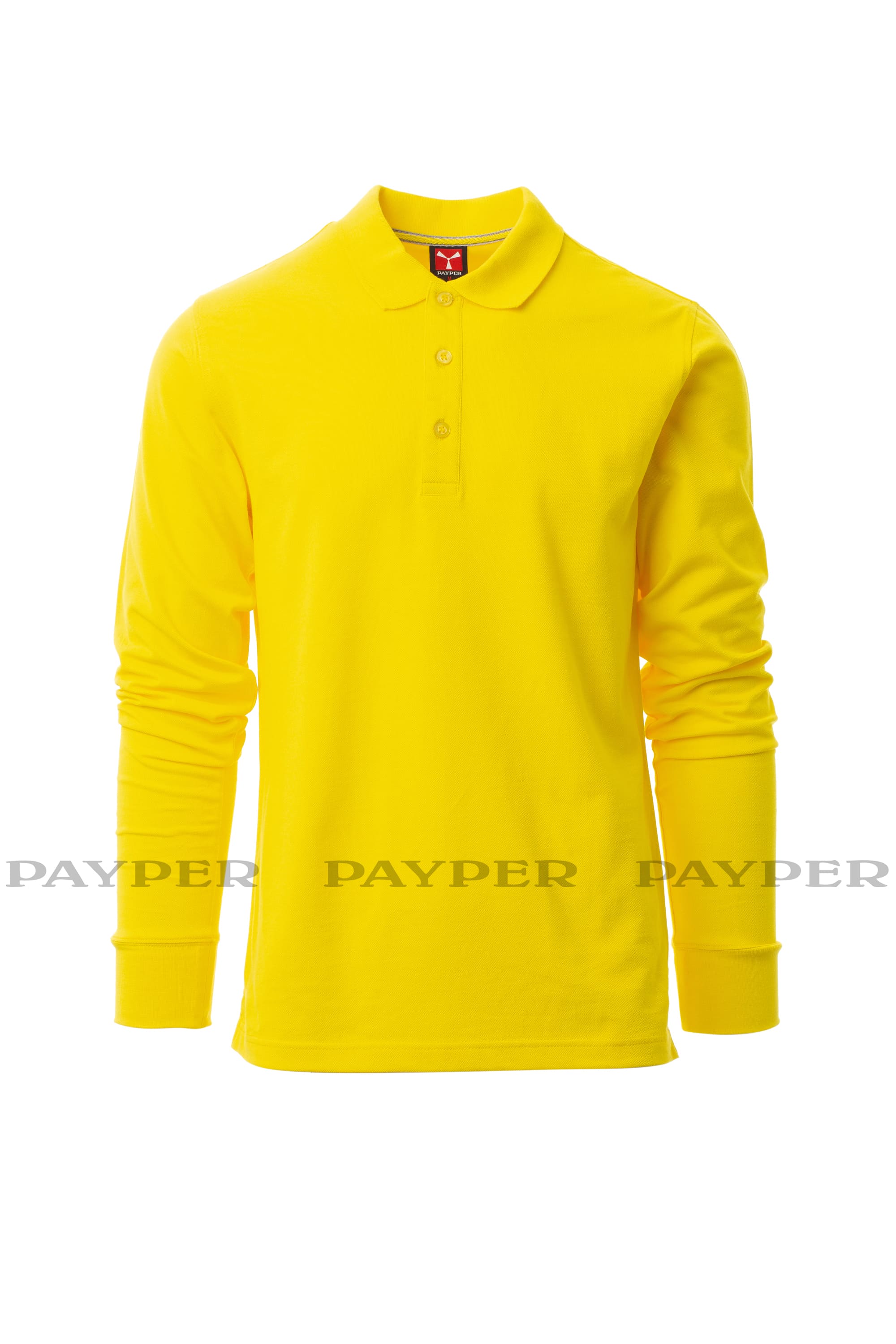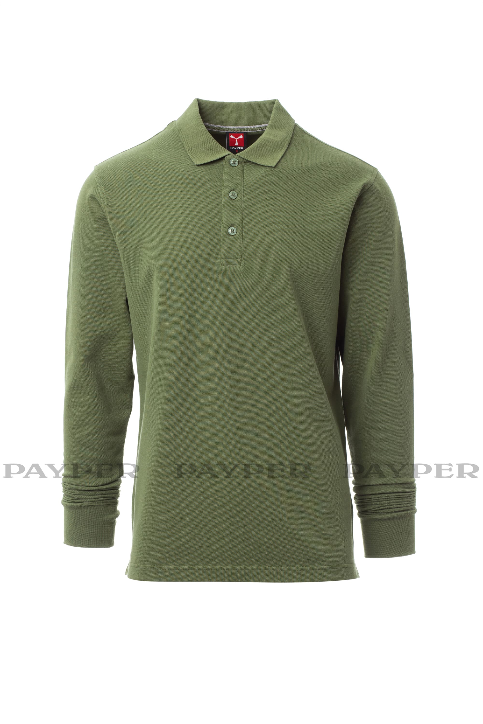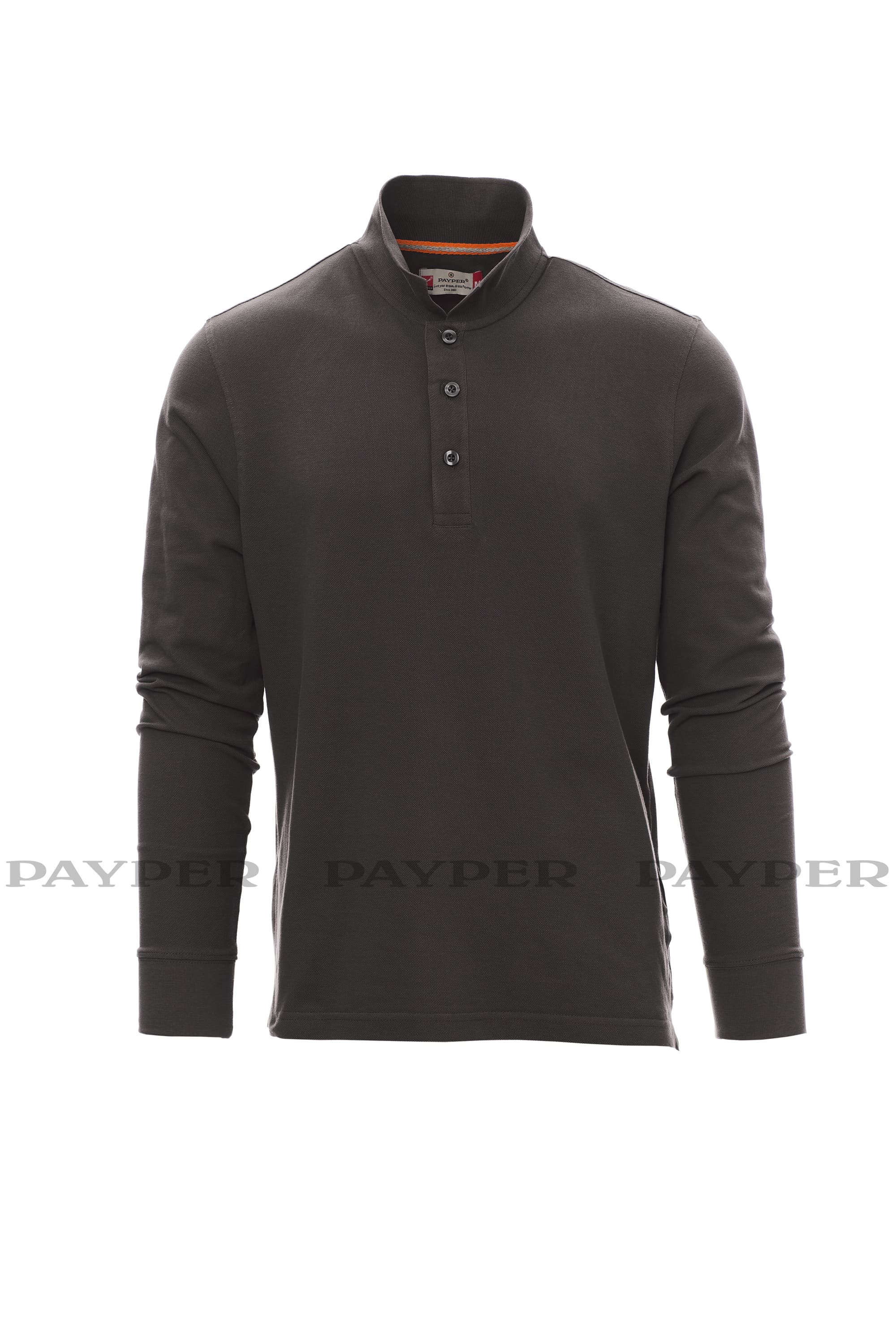 Polo da uomo a manica lunga con 3 bottoni in tinta effetto perlato, colletto e polsino a costine, spacchetti laterali, cuciture del collo coperte con nastro a contrasto, cuciture stretch, nastro di rinforzo laterale, rinforzo sagomato retrocollo.