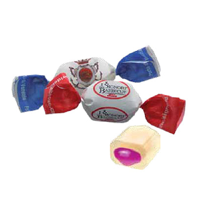Caramelle alla frutta, confezionate singolarmente con incarto doppio fiocco bianco, trasparente o metallizzato.