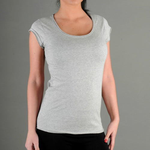 Magli da Donna, scollatura tonda a manica corta e taglio vivo.