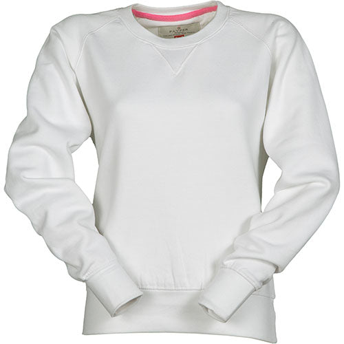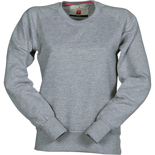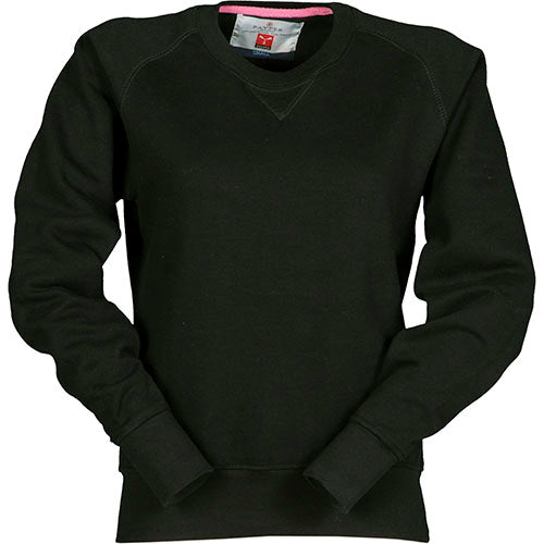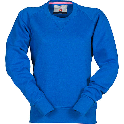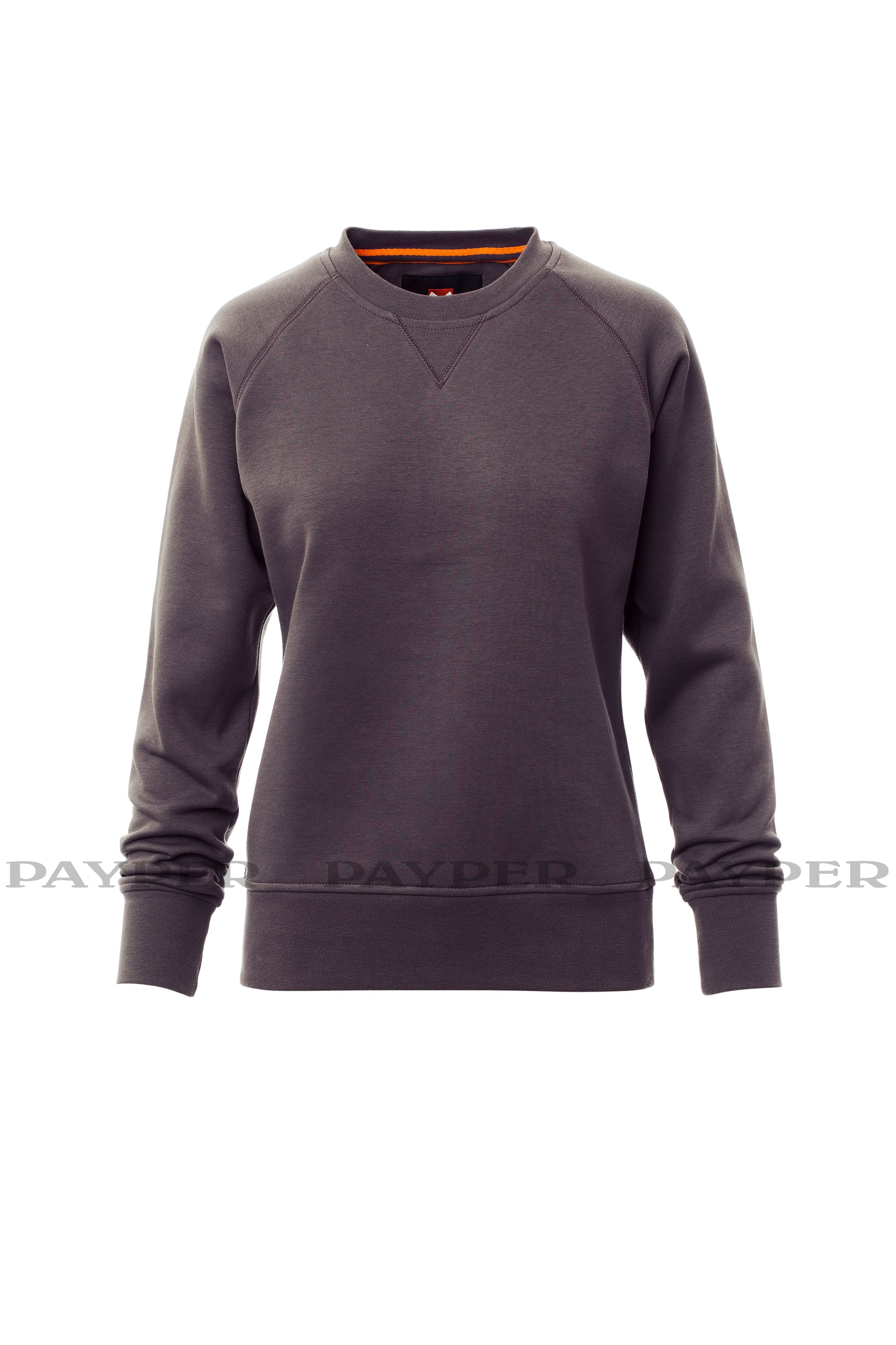 Felpa da donna a girocollo, manica raglan, cucitura estetica a V al collo, polsini e vita in costina elasticizzata, cuciture rinforzate.MaterialeGarzato 70% Cotone 30% PoliesterePeso300Gr/m²TaglieXS/XXL