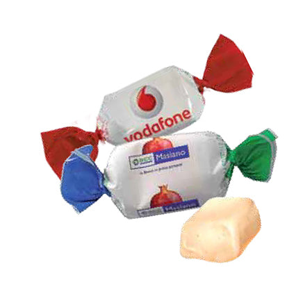 Caramelle toffee, confezionate singolarmente con incarto doppio fiocco bianco, trasparente o metallizzato.