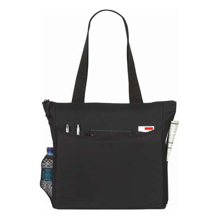 Spazioso scomparto principale con chiusura lampo. Tasche per penne e biglietti da visita dietro l'ampia tasca principale. Tasca laterale per cellulare e tasca a rete. Manici a spalla.