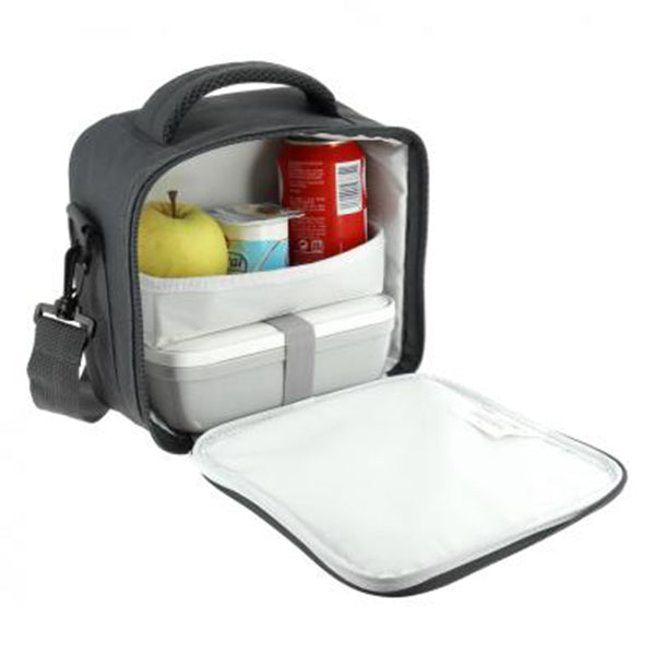 Brosa frigo verticale per un facile accesso agli alimenti. Scomparto principale isolato con vassoio estraibile all'interno. Dotata di un'ulteriore tasca frontale, manico rinforzato e tracolla da poggiare sulla spalla.