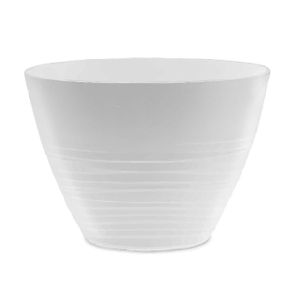 Secchiello dalla forma pulite e generoso nelle dimensioni. Il gioco di onde impresso sulla superficie si ispira al movimento dell'acqua e delle dune scolpite dal vento...