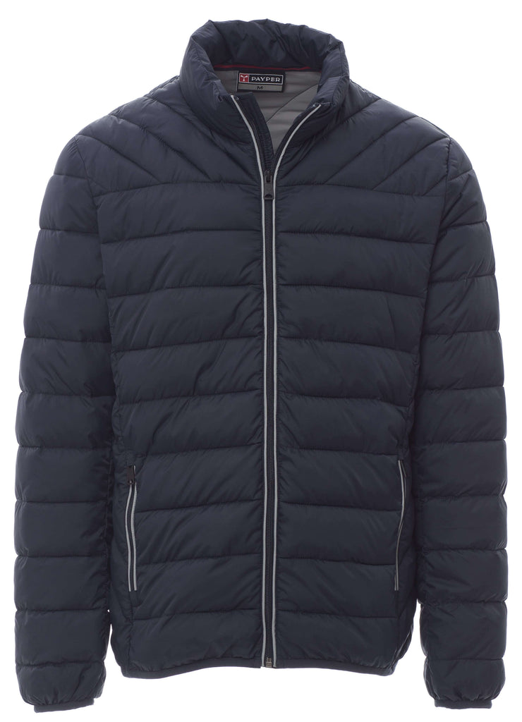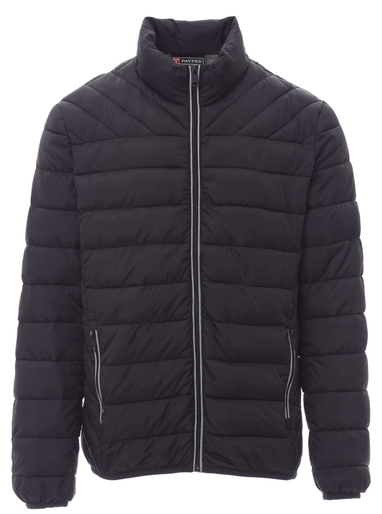 Piumino da uomo , zip 5mm in plastica con cursore in metallo, fine bordino ai polsi e in vita, due tasche esterne. Interno: imbottito di poliestere effetto piuma, due tasche.