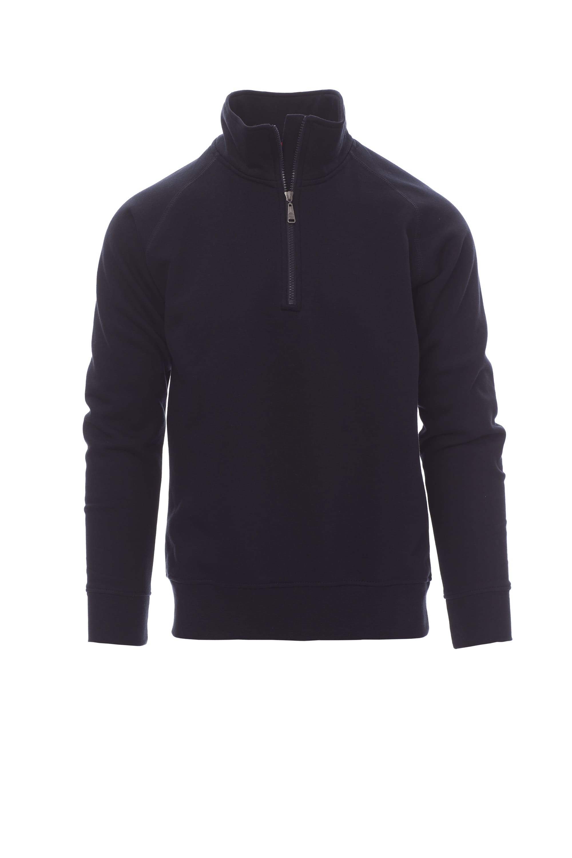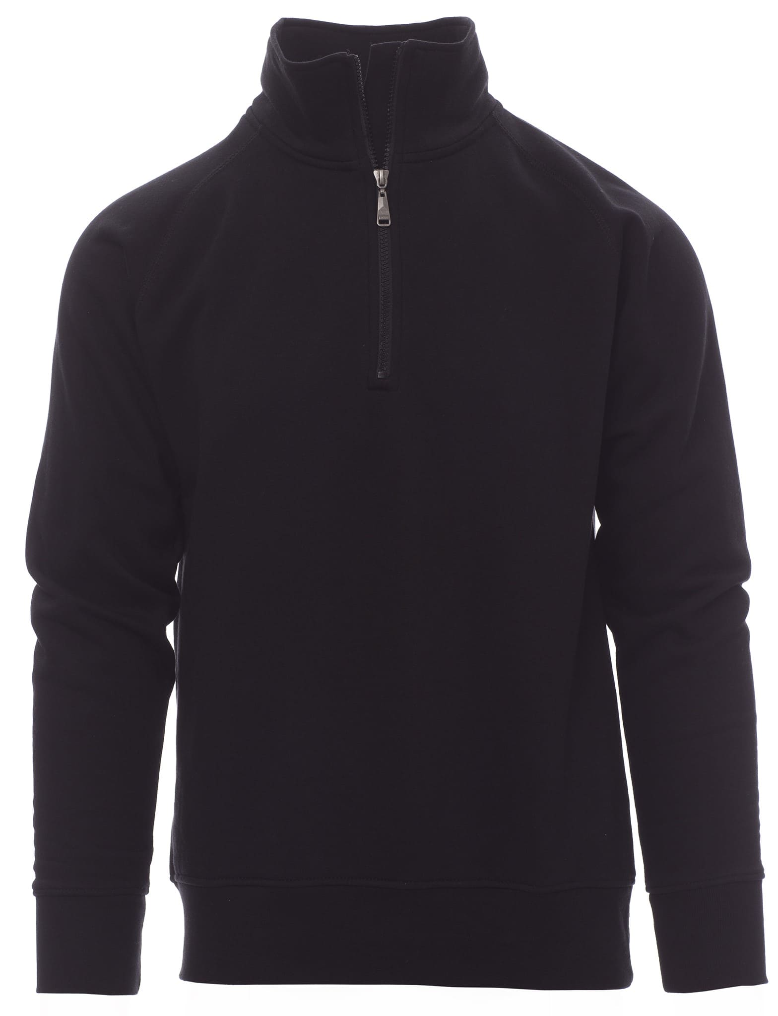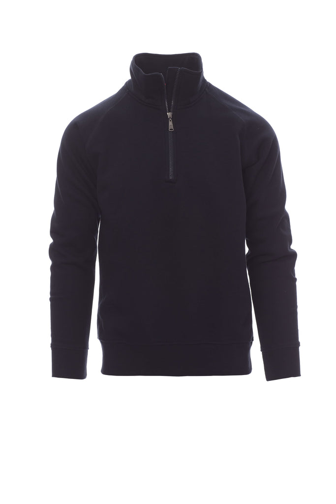 Felpa da uomo, mezza zip in tinta, in plastica con cursore in metallo, manica raglan, polsini e vita in costina elasticizzata, cuciture rinforzate.