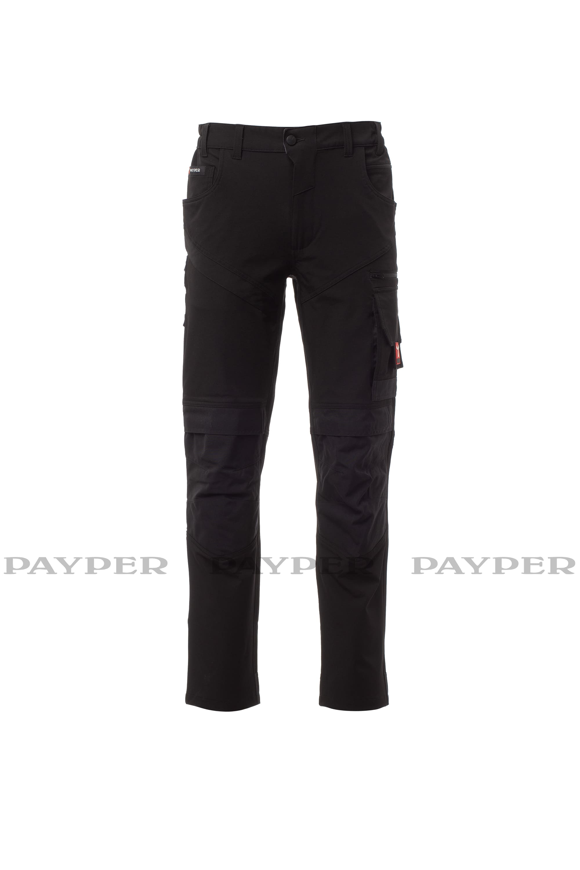 Pantalone unisex, “4 way stretch”, multistagione, con elastici laterali e passanti in vita, chiusura con zip e bottone personalizzato. Sul davanti ha due tasche arrotondate, un taschino porta monete a destra, un taschino di sicurezza chiuso con zip a sinistra. Sul fronte della gamba sinistra presenta 3 tasche: una tasca orizzontale chiusa da una zip, una tasca con patta sagomata chiusa con velcro e dotata di portabadge, una tasca piccola verticale chiusa con zip. Sul fronte della gamba destra è presente una banda retroriflettente (ad eccezione della variante colore Nero). Entrambe le gambe sono dotate di porta ginocchiere in Nylon Oxford 500D, con apertura dall'alto. Sul retro sono presenti: una tasca con pattina chiusa con velcro e una tasca senza pattina ma con 2 bande retroriflettenti, un anello porta martello (gamba destra), una tasca aperta porta metro (gamba destra) e una tasca porta smartphone con patta e velcro (gamba destra), inserti retroriflettenti all’altezza del ginocchio su entrambe le gambe (ad eccezione della variante colore Nero), battitacco in tessuto a contrasto (entrambe le gambe). Impunture laterali e travette di rinforzo a contrasto in vari punti. Le taglie (italiane) centrali 48-50-52 hanno un interno gamba regolare di 82 cm.