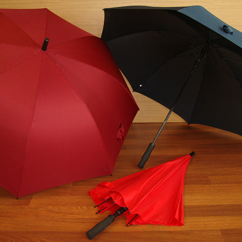 Ombrello con apertura automatica, diametro cm 135 maxi golf, fusto in fibra ANTIVENTO e ANTIFULMINE stecche in fibra di vetro, impugnatura dritta tipo EVA.