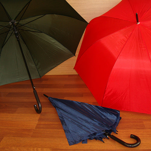 Ombrello con apertura automatica, diametro cm 120 medio golf, fusto in metallo nero, stecche in fibra di vetro, impugnatura curva nera.