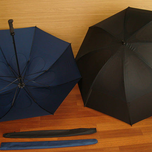 Ombrello con apertura manuale, diametro cm 135 maxi golf, fusto in fibra di vetro ANTIVENTO e ANTIFULMINE, stecche in fibra di vetro, impugnatura dritta tipo EVA.