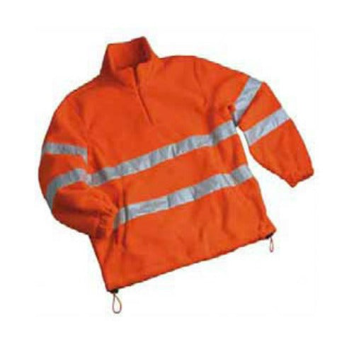 Pile alta visibilità:- tessuto antipilling;- zip corta;- due tasche laterali con bottone a pressione;- polsini con elastico;- coulisse in vita;- portabadge cucito sul petto lato cuore