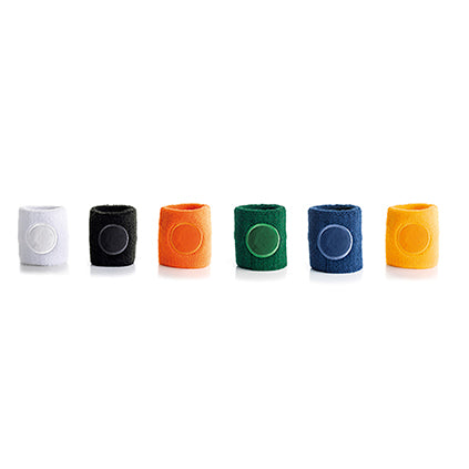 Polsino tergisudore in spugna elasticizzata con aplicazione per stampa.