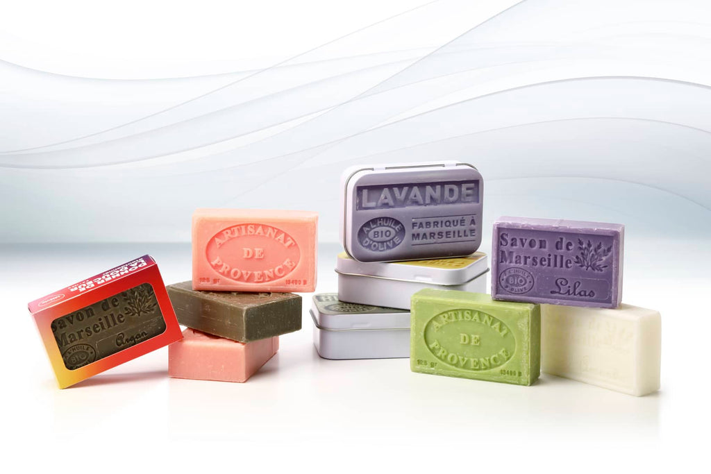 Saponette Artigianali Profumate, è possibile la personalizzazione del vostro logo impresso sulla saponetta, confezionate su scatole in cartone o in metallo completamente personalizzate.