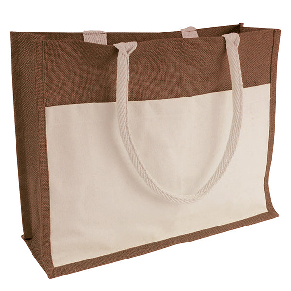 Borsa Mare in Cotone e Juta, interno Cerato, manici lunghi, soffietto e tasca frontale.