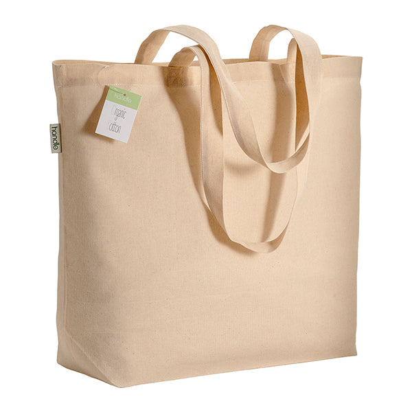 Shopper in Cotone Organico con manici lunghi e soffietto alla Base.