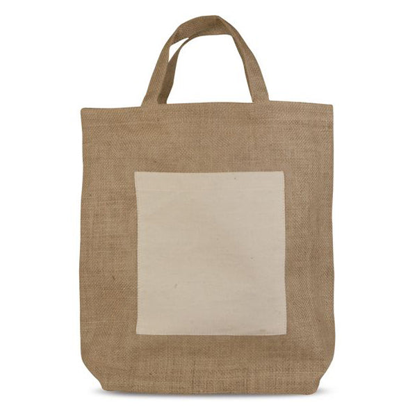 Borsa shopper in Juta con tasca esterna in cotone naturale, con manici corti.