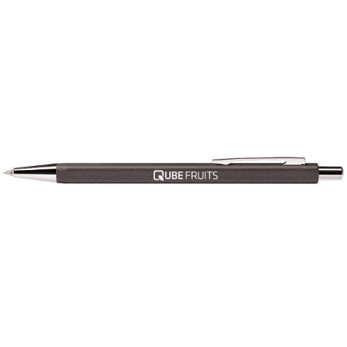 Penna a sfera a scatto a forma quadrata col fusto in ottone e superficie moderna in antracite opaca.