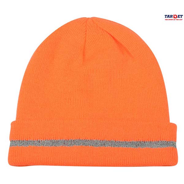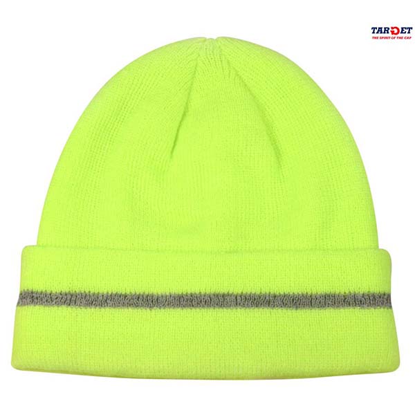 Alta visibilità notturna per la cuffia in acrilico con riga in filato riflettente.
