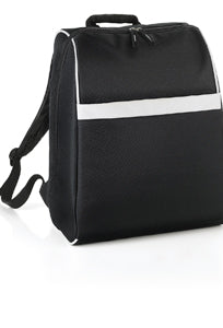 Zaino porta computer in tessuto 600D completamente imbottito, comparto principale con alloggiamento per il laptop, comparto porta acessori, tasca frontale, spallacci ergonomici imbottiti, maniglia imbottita, tira zip in tessuto con impunture in contrasto.